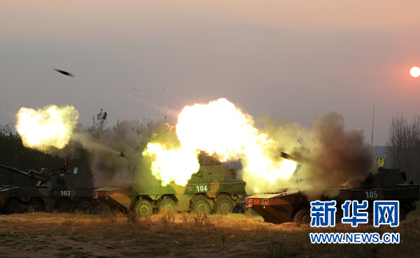 ?。玻埃保赌晟钋?,中部戰(zhàn)區(qū)陸軍某炮兵團實彈演習在某訓練基地打響。隨著指揮所里傳來射擊指令,榴彈炮發(fā)發(fā)炮彈呼嘯而出,瞬間粉碎當面之“敵”。