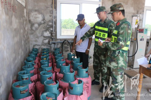 ????這個邊防派出所組織官兵對轄區(qū)船廠、液化氣站等重點部門和單位進行消防安全檢查。檢查中,官兵每到一處都仔細查看值班制度落實、監(jiān)控室、消防安全以及人防、物防、技防等防范情況,對檢查中發(fā)現(xiàn)的隱患能當場整改的責令當場整改,同時結(jié)合工作實際對行業(yè)業(yè)主進行法律法規(guī)宣傳。