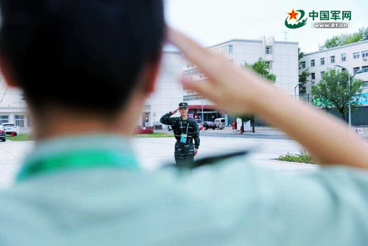“一個(gè)軍禮,敬給近在咫尺的親人 。”圖為分別時(shí)夫妻倆互敬軍禮,同時(shí)奔赴一線。陳紅宇攝