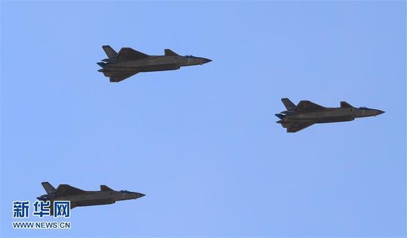 7月30日,慶祝中國人民解放軍建軍90周年閱兵在位于內(nèi)蒙古的朱日和訓練基地舉行。這是殲擊機梯隊的殲-20戰(zhàn)機。新華社記者 李剛 攝