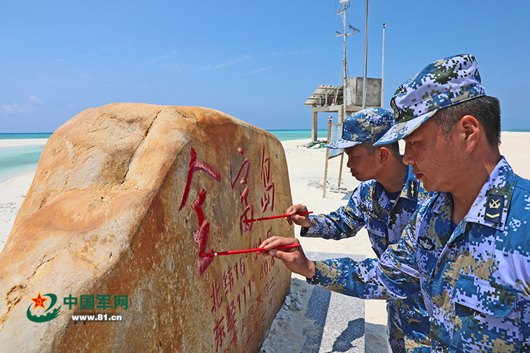 在全富島,關(guān)建軍和三沙市副市長(zhǎng)陳儒茂帶頭描摹主權(quán)碑上“中國(guó)”兩個(gè)大字?!懊棵枰还P,都感到神圣無(wú)比,建設(shè)強(qiáng)大穩(wěn)固的現(xiàn)代邊??辗?,共同守護(hù)好我們的祖宗海,離不開(kāi)軍地協(xié)力??钙疬@一如山使命,我們責(zé)無(wú)旁貸!”關(guān)建軍的話語(yǔ)擲地有聲。特約記者 薛成清 通訊員 盆世舟 潘新新
