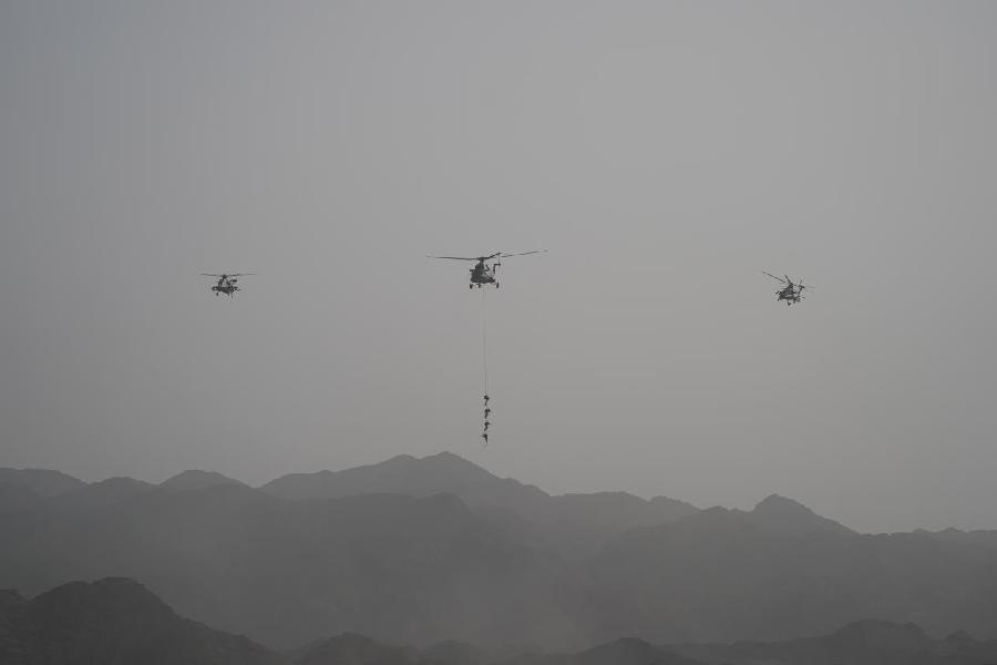 ????23日,陸軍新質(zhì)作戰(zhàn)力量演練在陸軍多個演兵場連續(xù)“打響”,8支新質(zhì)作戰(zhàn)力量輪番上陣。圖為特戰(zhàn)隊員進行滑降。新華社記者王東明 攝