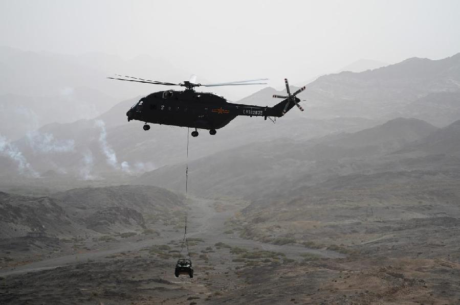 ????23日,陸軍新質(zhì)作戰(zhàn)力量演練在陸軍多個演兵場連續(xù)“打響”,8支新質(zhì)作戰(zhàn)力量輪番上陣。圖為運輸直升機吊運全地形車。新華社記者王東明 攝