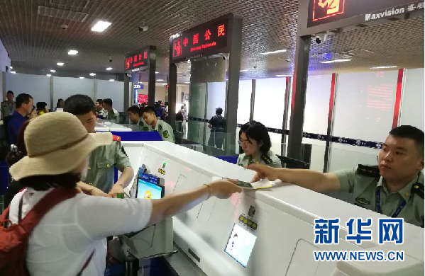 ????6月18日是我國移民管理局成立后,通過公安部新聞發(fā)布會向社會公開承諾“在全國陸??湛诎秾崿F(xiàn)中國公民出入境通關排隊不超過30分鐘”的第一天。當日,在吉林省琿春市中俄口岸、延吉市朝陽川國際機場等吉林省大型口岸現(xiàn)場,可以看到,警容嚴整的邊防檢查站官兵跑步執(zhí)勤、揮汗如雨,往來如織的旅客正迅速有序通關。