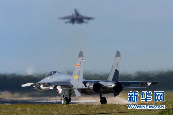 空軍“先鋒飛行大隊”飛行員依次駕機升空,開展空戰(zhàn)對抗訓練(9月7日攝)。 新華社發(fā)(萬全 攝)