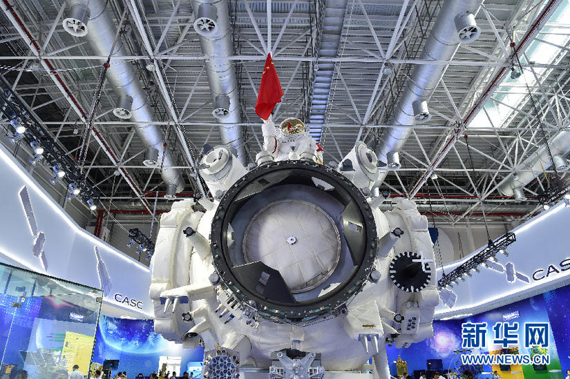??? 這是展出的空間站核心艙實(shí)物(工藝驗(yàn)證艙)(11月5日攝)。 11月6日,在廣東珠海舉辦的第十二屆中國國際航空航天博覽會(huì)上,中國空間站“天和”號核心艙揭開神秘面紗,公開亮相。 新華社記者梁旭攝