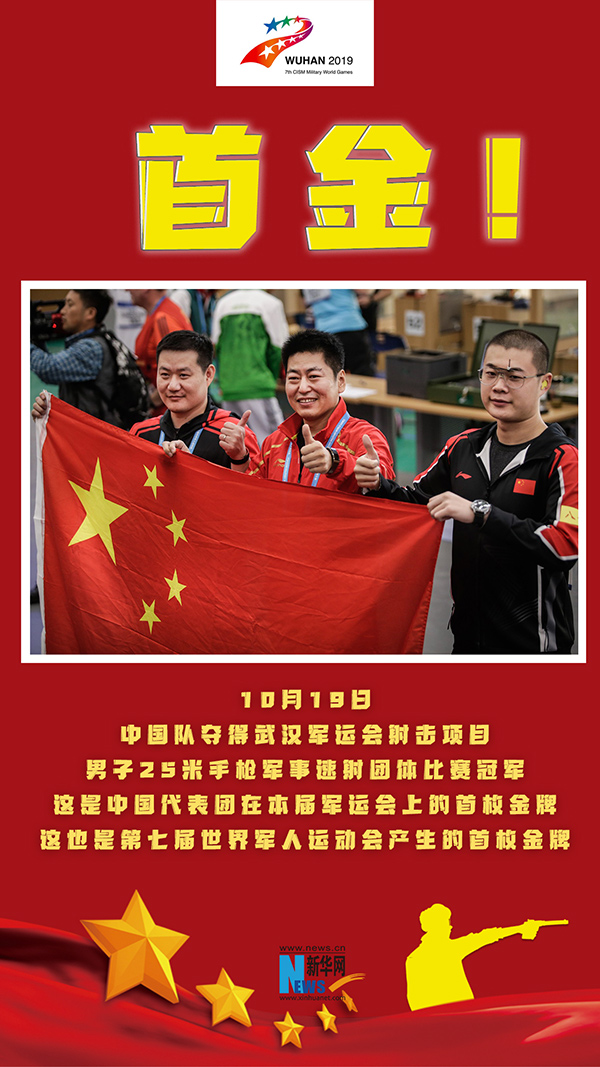 新華社武漢10月19日電 題:打響第一槍 射中第一金——中國隊(duì)勇奪第七屆世界軍人運(yùn)動會首金側(cè)記