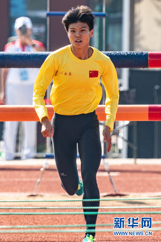 10月20日,中國(guó)隊(duì)選手盧嬪嬪在比賽中。 當(dāng)日,在武漢舉行的第七屆世界軍人運(yùn)動(dòng)會(huì)軍事五項(xiàng)女子個(gè)人全能障礙跑項(xiàng)目中,中國(guó)隊(duì)選手盧嬪嬪以2分10秒09的成績(jī)打破該項(xiàng)目世界紀(jì)錄,排名第一。 新華社記者劉金海攝