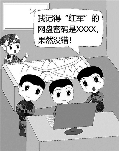 ????演練結(jié)束,這名文書(shū)坦言,他早就知道對(duì)方的網(wǎng)盤(pán)密碼。原來(lái),此前,各營(yíng)文書(shū)為了便于工作交流,有時(shí)會(huì)使用網(wǎng)盤(pán)傳輸或分享文件,一些網(wǎng)盤(pán)用戶(hù)名和密碼不少人都知道。這次演練前,“藍(lán)軍”營(yíng)文書(shū)在用網(wǎng)盤(pán)調(diào)取查閱資料時(shí),無(wú)意中在對(duì)方網(wǎng)盤(pán)中發(fā)現(xiàn)了秘密。