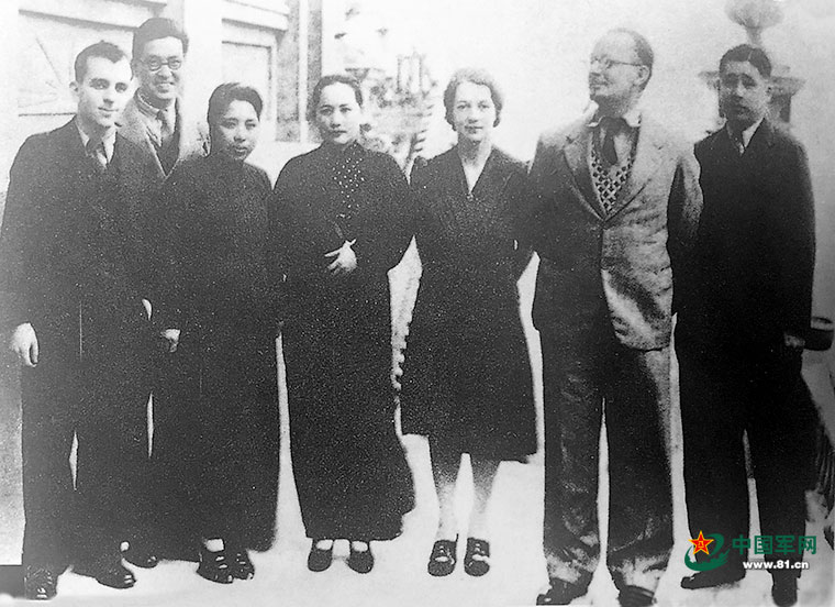 ????1938年6月,八路軍駐香港辦事處主任廖承志在香港與保衛(wèi)中國同盟中央執(zhí)行委員會主席宋慶齡及其他委員的合影。右一為廖承志,右四為宋慶齡。