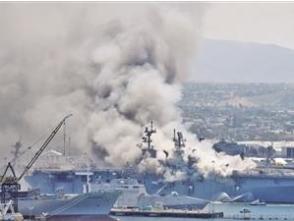 ????“好人理查德”號兩棲攻擊艦火災現場濃煙滾滾