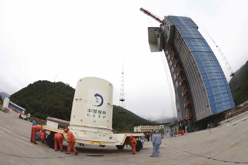 ????嫦娥一號衛(wèi)星運抵西昌衛(wèi)星發(fā)射中心西昌發(fā)射場(2007年10月11日攝)。新華社發(fā)(郭文彬 攝)