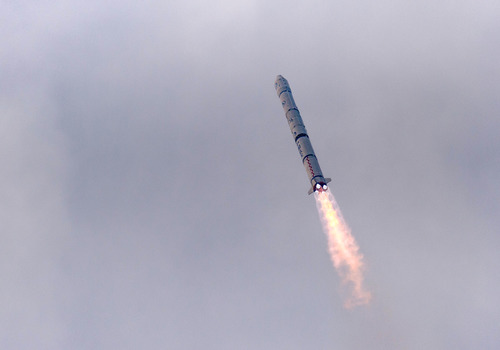 ????搭載風(fēng)云二號08星的運載火箭在西昌衛(wèi)星發(fā)射中心點火發(fā)射(2014年12月31日攝)。新華社發(fā)(郭文彬 攝)