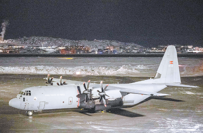 15日,丹麦皇家空军的一架C-130J运输机停靠在格陵兰岛的努克国际机场。该运输机前一天运载丹麦军事人员抵达该地。(视觉中国)