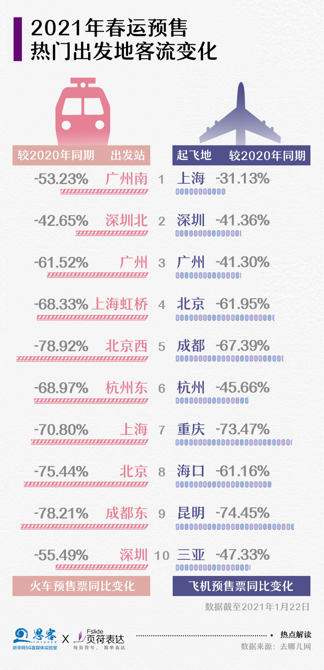 2021年春運(yùn)客流驟降,“就地過(guò)年”減少了春運(yùn)期間人流遷徙。根據(jù)交通運(yùn)輸部門(mén)預(yù)測(cè),2021年全國(guó)春運(yùn)期間將發(fā)送旅客17億人次左右,日均4000萬(wàn)人次,比2019年下降四成多,比2020年增加一成多。