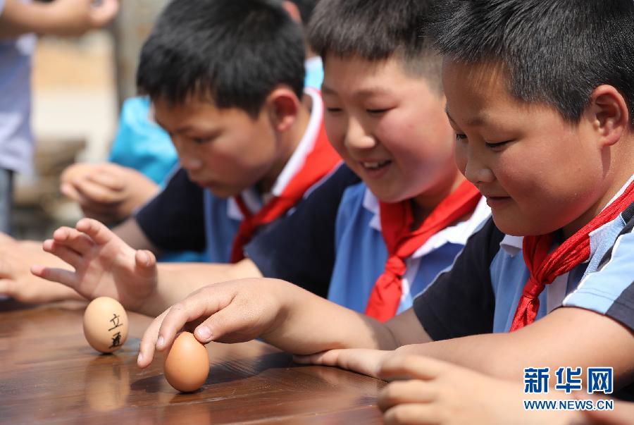 5月5日,在浙江杭州臨安區(qū)天目山鎮(zhèn)武山村,幾名小學(xué)生在體驗“立蛋”的傳統(tǒng)習(xí)俗。立夏節(jié)氣將至,人們參加繪彩蛋、稱體重等活動,體驗傳統(tǒng)民俗。新華社發(fā)(胡劍歡 攝)