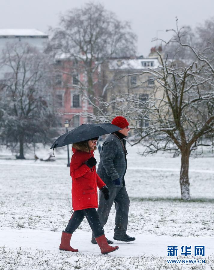 1月24日,人們?cè)谟?guó)倫敦的雪地上行走。新華社記者韓巖攝