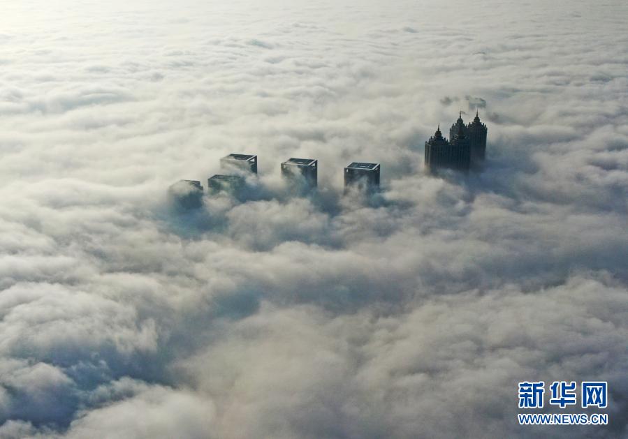 這是1月26日在沈陽市渾南區(qū)拍攝的市內(nèi)霧景(無人機照片)。當(dāng)日,沈陽出現(xiàn)大霧天氣,城市樓宇在濃霧中若隱若現(xiàn)。新華社記者 楊青 攝