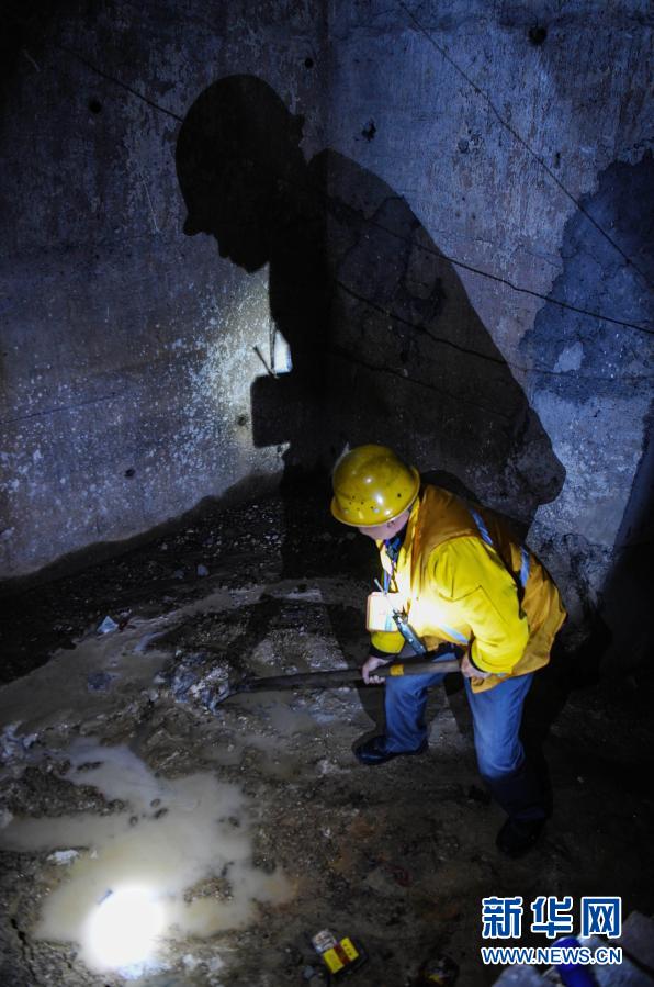 在廣西河池境內(nèi)黔桂鐵路線上的鄧山隧道,中國鐵路南寧局集團有限公司柳州工務(wù)段的4名看守工輪換值班,依靠手電筒在黑暗中穿行,及時巡查隧道中可能出現(xiàn)的各種隱患,確保每天經(jīng)隧道運行的59趟客貨列車春運安全。鄧山隧道全長773米,是一個需要人員全天候看守的鐵路隧道。
