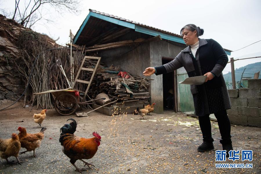 1月29日,在湖南省瀘溪縣浦市鎮(zhèn)麻溪口村,蔣四妹在喂雞。