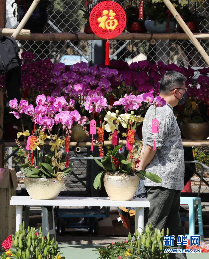 2月6日,市民在香港維多利亞公園的年花銷(xiāo)售點(diǎn)選購(gòu)鮮花。新華社記者 李鋼 攝
