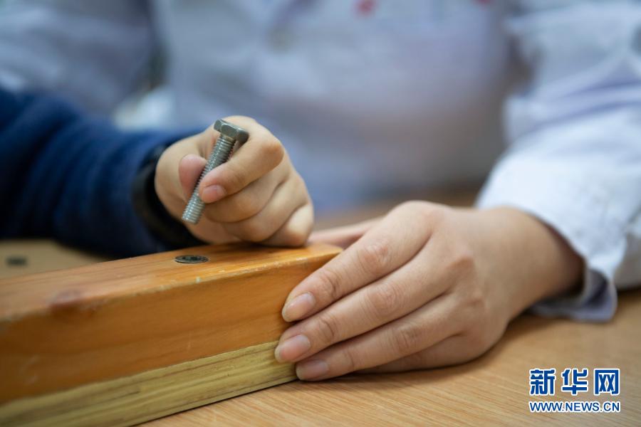 在哈爾濱博能中醫(yī)門診部,劉雨晴為腦癱兒童進(jìn)行康復(fù)訓(xùn)練(2月2日攝)。