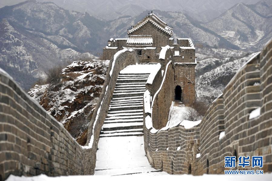 這是2月23日拍攝的金山嶺長城雪景。受冷空氣影響,河北省承德市灤平縣當(dāng)日出現(xiàn)降雪天氣。雪后的金山嶺長城銀裝素裹,美如畫卷。新華社發(fā)(王立群 攝)