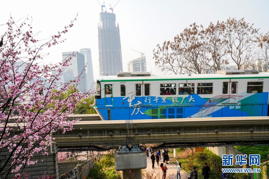 初春時(shí)節(jié),重慶氣溫逐漸回暖,暖陽里的山城春意盎然。在重慶軌道交通2號線佛圖關(guān)段,山城步道上的梅花簇簇綻放,單軌列車穿越花海,組成一幅賞心悅目的獨(dú)特城市景觀。