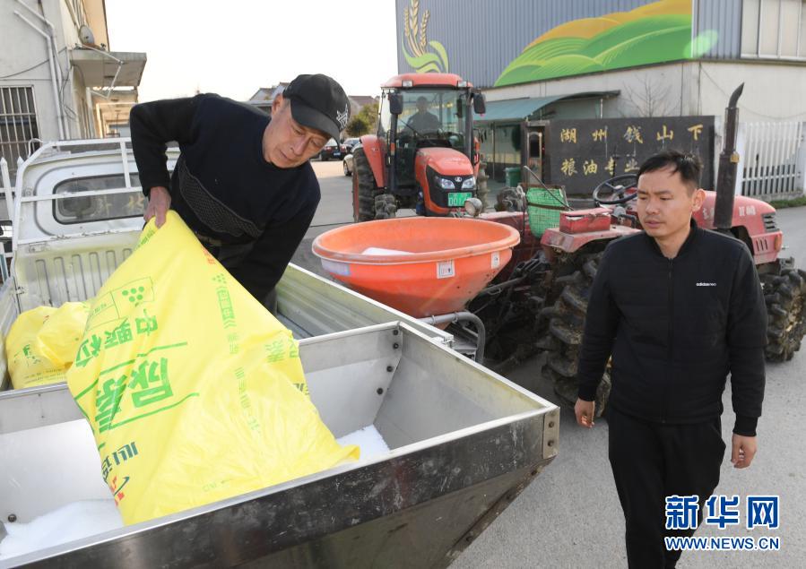 2月23日,湖州錢(qián)山下糧油專(zhuān)業(yè)合作社工作人員在農(nóng)機(jī)內(nèi)裝載化肥準(zhǔn)備施肥。立春過(guò)后氣溫回升,浙江省湖州市吳興區(qū)道場(chǎng)鄉(xiāng)全力開(kāi)展春耕工作。今年該鄉(xiāng)計(jì)劃播種農(nóng)作物總面積1.2萬(wàn)畝,其中水稻5000畝、小麥2000畝。新華社記者 翁忻旸 攝