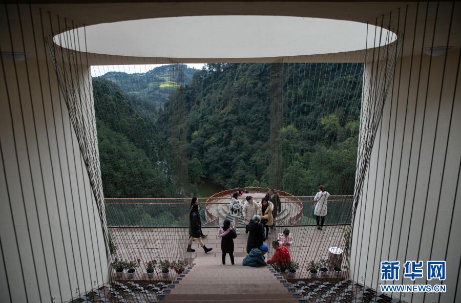 3月1日,游客在幸福古村的觀景平臺(tái)賞景。新華社記者 江宏景 攝