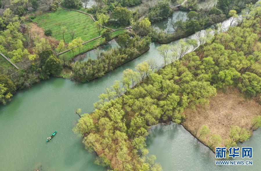早春時節(jié),浙江杭州西溪濕地新綠初綻,春光明媚。