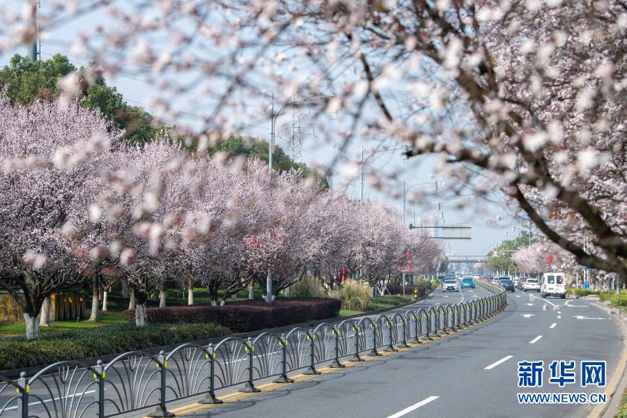 江蘇省昆山市馬鞍山路兩旁鮮花盛開(3月2日攝)。新華社發(fā)(王須中 攝)