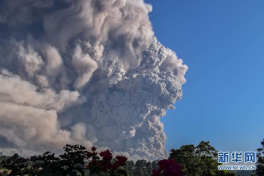 這是3月2日在印度尼西亞北蘇門答臘省卡羅拍攝的噴發(fā)中的錫納朋火山。新華社發(fā)(森比林?jǐn)z)