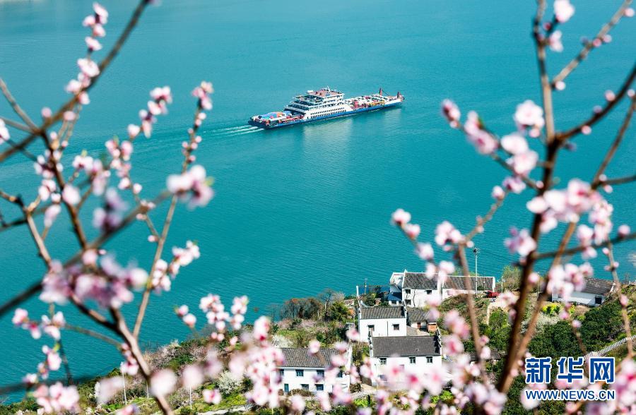 春到三峽,桃花盛開,江水碧綠,船舶往來如梭,構(gòu)成一幅幅美麗的圖畫。