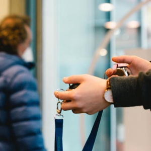 3月8日,德國(guó)科隆一家書(shū)店的工作人員在入口處手拿計(jì)數(shù)器限制客流。