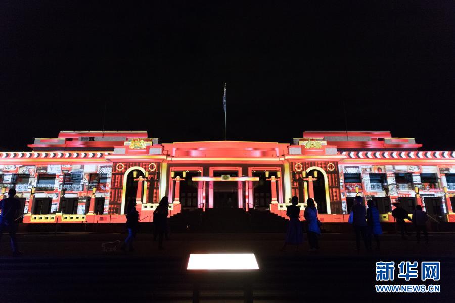 這是3月8日在澳大利亞堪培拉拍攝的老國會(huì)大樓的燈光投影。