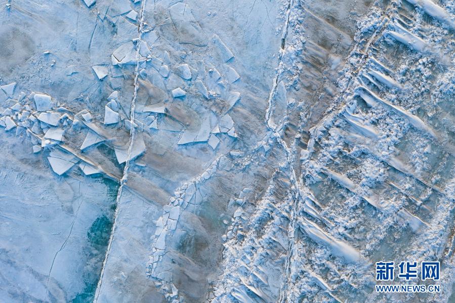 3月13日拍攝的封凍的興凱湖湖面(無人機(jī)照片)。