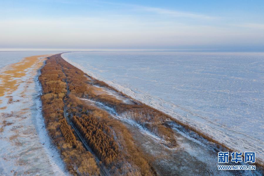 3月13日拍攝的封凍的興凱湖(無(wú)人機(jī)照片)。
