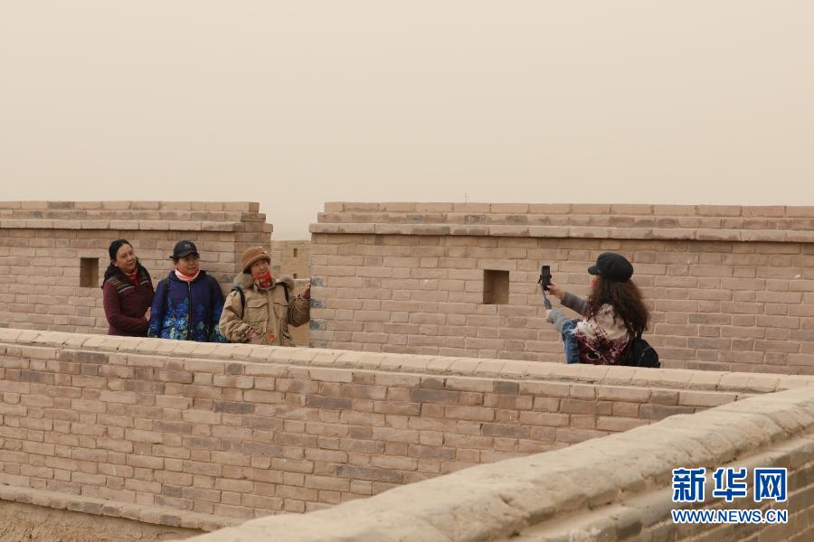 3月17日,游客在嘉峪關(guān)關(guān)城景區(qū)游覽。新華社記者 張智敏 攝