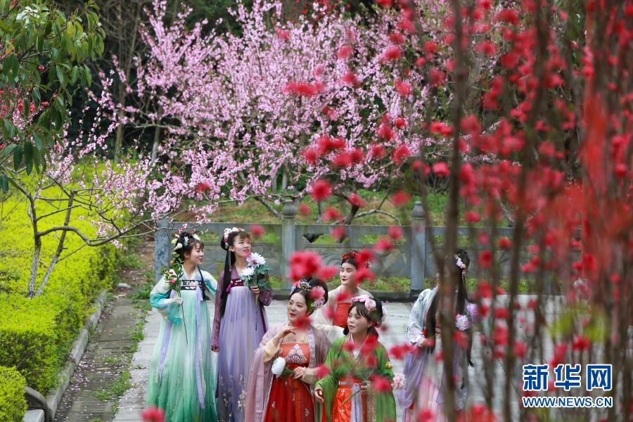 3月20日,在湖北省襄陽市黃家灣景區(qū),漢服愛好者踏青賞花。