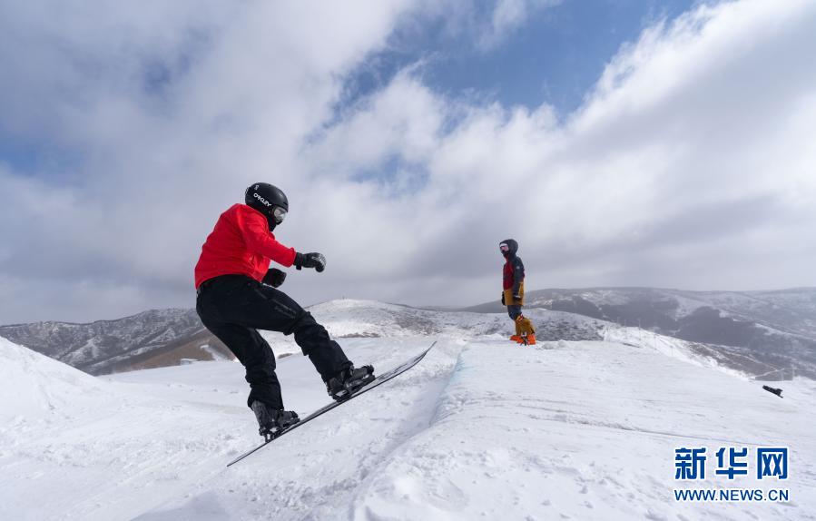 3月20日,冬殘奧會(huì)國(guó)家集訓(xùn)隊(duì)單板滑雪運(yùn)動(dòng)員巖溫的(左)在冬殘奧會(huì)訓(xùn)練基地訓(xùn)練。新華社記者 才揚(yáng) 攝