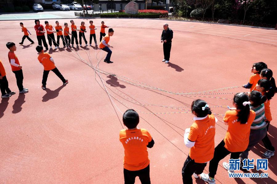 3月23日,在合肥市大通路小學(xué)新海校區(qū),學(xué)生在大課間練習(xí)花樣跳繩。