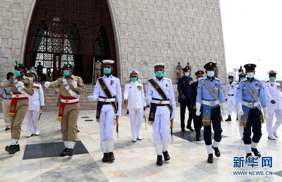3月23日,巴基斯坦軍人在位于卡拉奇的國父真納墓參加“巴基斯坦日”紀念活動。