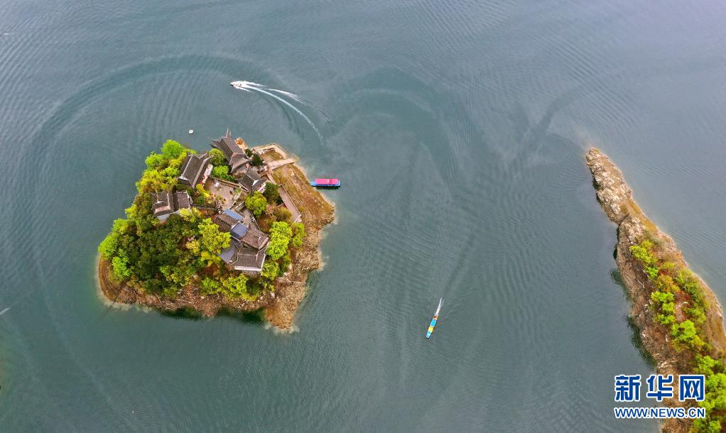 游人乘船在流水鎮(zhèn)的漢江上游玩(3月26日攝,無(wú)人機(jī)照片)。