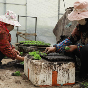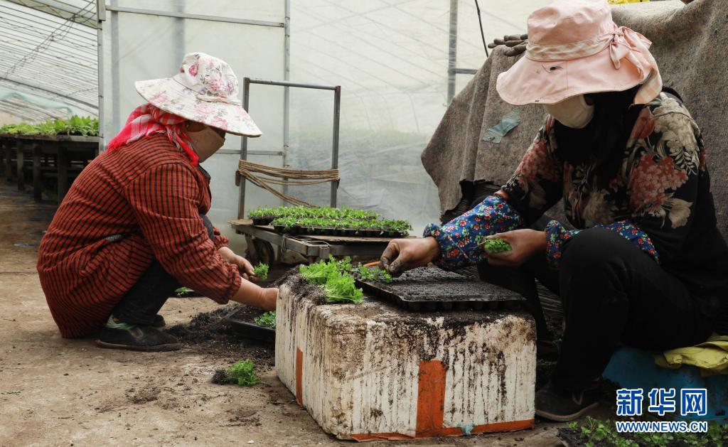 3月25日,位于青海省海西蒙古族藏族自治州都蘭縣香日德鎮(zhèn)下柴源村的都蘭柴源蔬菜種植專業(yè)合作社工作人員在嫁接芹菜苗。新華社記者 王艷 攝