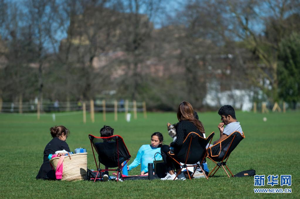 3月29日,人們在英國倫敦?cái)z政公園的草地上野餐。