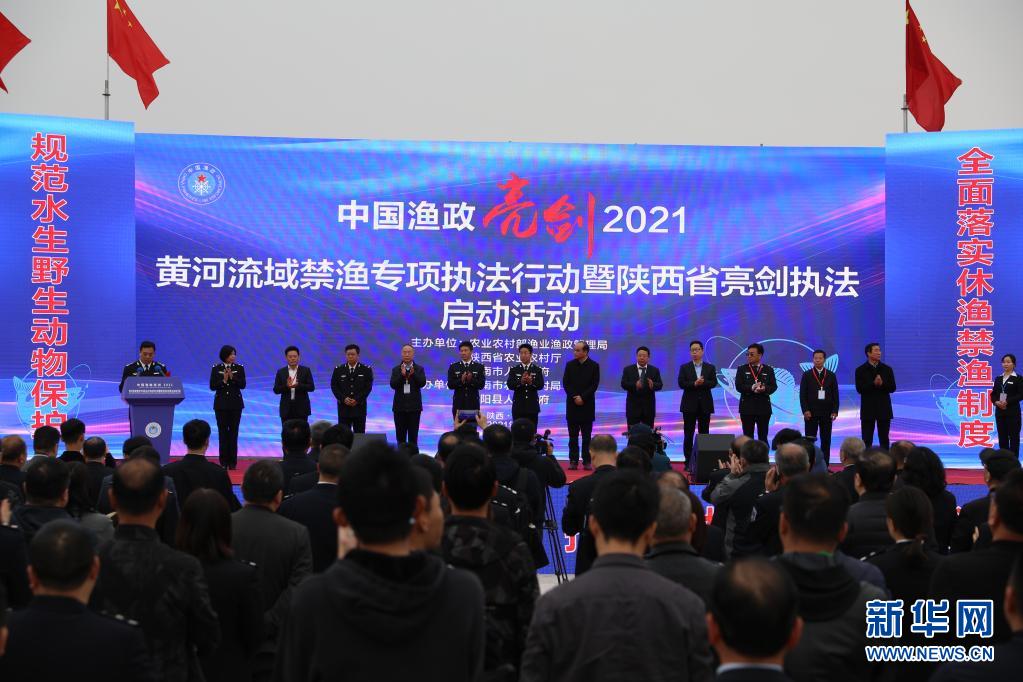 4月1日,“中國漁政亮劍2021”黃河流域禁漁專項(xiàng)執(zhí)法行動暨陜西省亮劍執(zhí)法啟動活動在黃河陜西洽川段舉行。