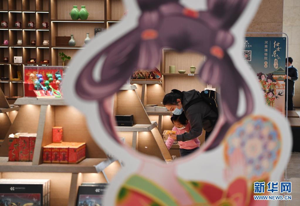 4月5日,參觀者在河南博物院選購(gòu)文創(chuàng)產(chǎn)品。