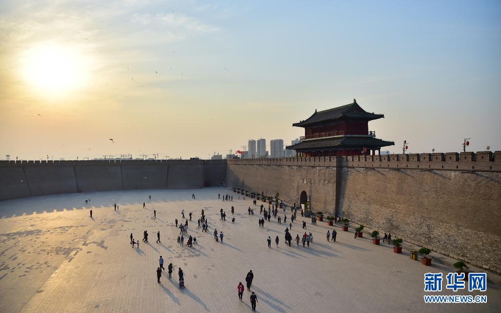 4月4日,游客在石家莊市古城正定南城門景點(diǎn)游玩。