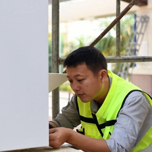 4月10日,工作人員在布置會(huì)場(chǎng)。